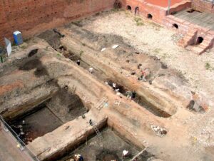 i funkcje. Nie można bowiem, zamku zrekonstruować w jego historycznym kształcie, gdyż brak jest jakichkolwiek jego rysunków z okresu średniowiecza i renesansu. Badania archeologiczne prowadzone w latach 2007 – 2008 przyniosły nadspodziewane rezultaty, okazało się bowiem, że w najniższych warstwach pod dziedzińcem zamkowym odsłonięto drewniane i kamienno-ceglane konstrukcje z końca XIII w.!